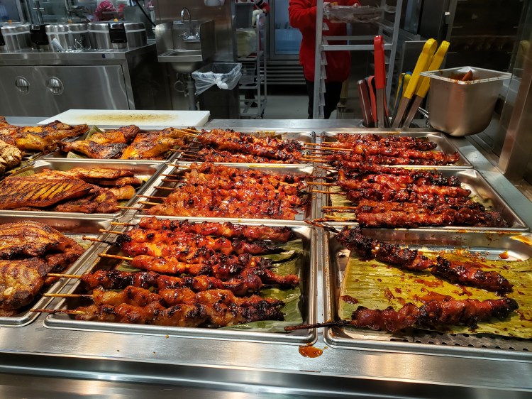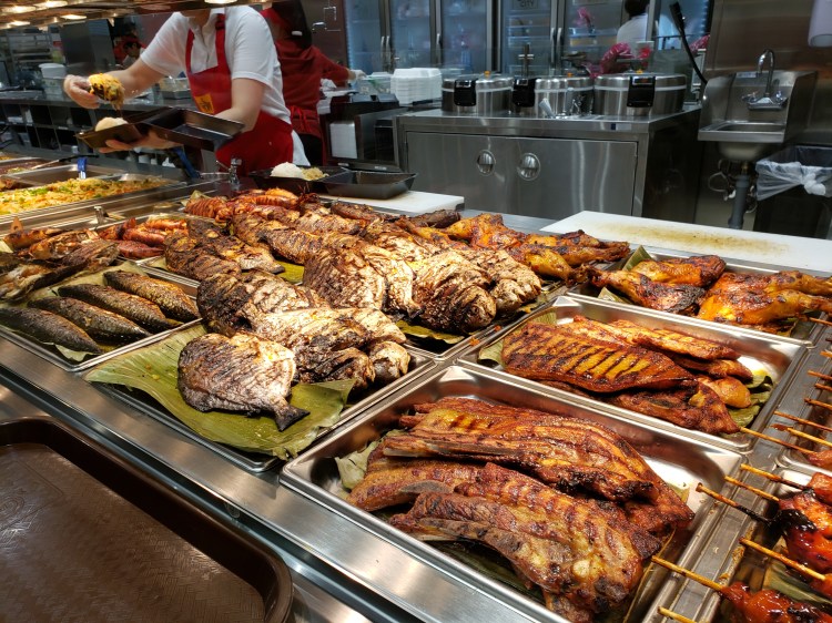 One Saturday morning after working until midnight the night before, I came into work only to find that I wasn’t scheduled to work. I was about to go back home and sleep when I suddenly remembered Seafood City is open at 8am. I called up my buddy Ron as he was about to get off from an overnight shift and then headed over to his neck of the woods to have some mighty fine breakfast. This place is a Filipino grocery store that has a food court serving some Filipino food. Think T&T except Filipino style. As I waited for my friend to arrive, I had a chance to browse through the merchandise and getting hungry at the same time at the smell of the amazing eats. I gotta say while walking through the aisle that I did feel a bit nostalgic and it did evoke familiarity…it felt like home. There were grocery contents are from all over Asia as well as a meat and fish market in the back. The food court consisted of three separate stalls which are Crispy Town, Grill City and Noodle Street. I wanted to get something from each location but ended up not checking out Noodle Street. The food selection was crazy and it was only breakfast. Suffice it to say my eyes were bigger than my stomach and I didn’t get to finish my Tocilog, BBQ pork skewers (x4), kareoka skewers (x2) and thick mango drink. After a good breakfast with some nice talks, it was finally time to go for a long drive back home and sleep. Although it is quite out of my way, I will definitely come back and get some ube ice cream and maybe some fish.